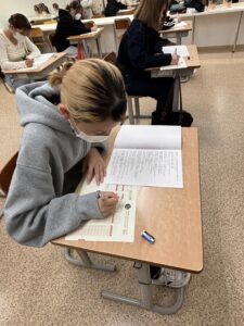 受験した学生たちは真剣な表情で問題に向き合っていました。